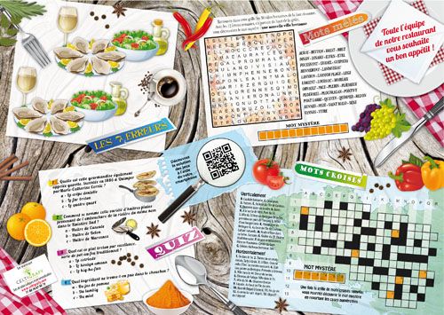 Chaque trimestre, une nouvelle édition de nos sets de table publicitaires est diffusée gratuitement auprès de restaurateurs partenaires du Morbihan. Chaque édition se décline en quatre sets ludiques et colorés.