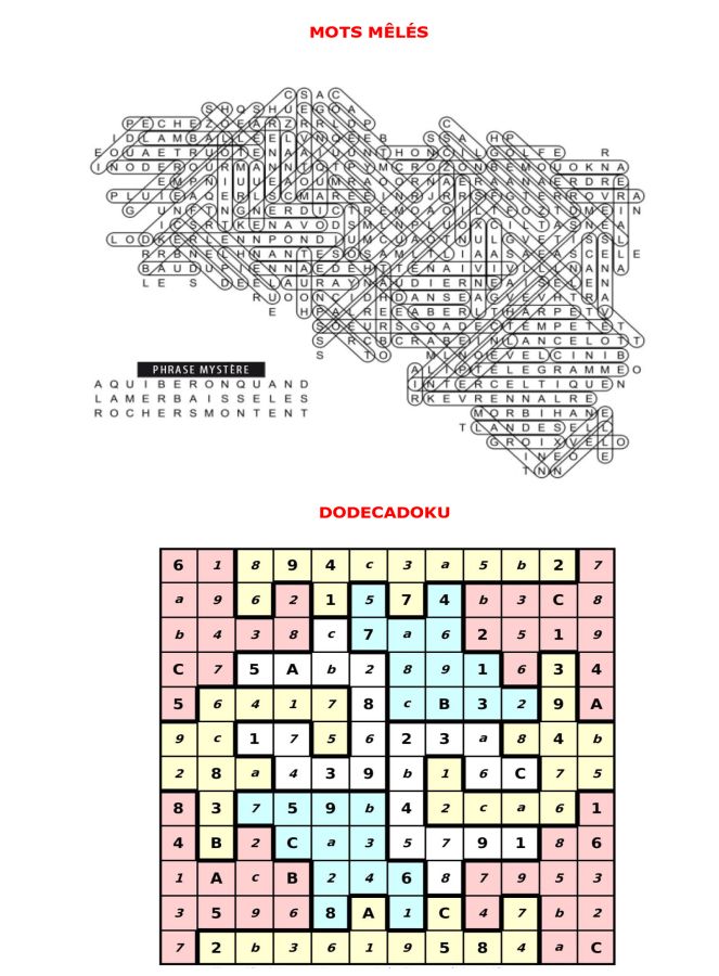 Mon deuxième fait partie d’une cartouche Mon troisième constitue un binôme Mon quatrième n’est pas triste Mon cinquième est un son bovin Mon sixième est au milieu du visage Mon tout est une spécialité morbihannaise Lent – douille – deux – gai – meuh – nez (L’andouille de Guémené) |
